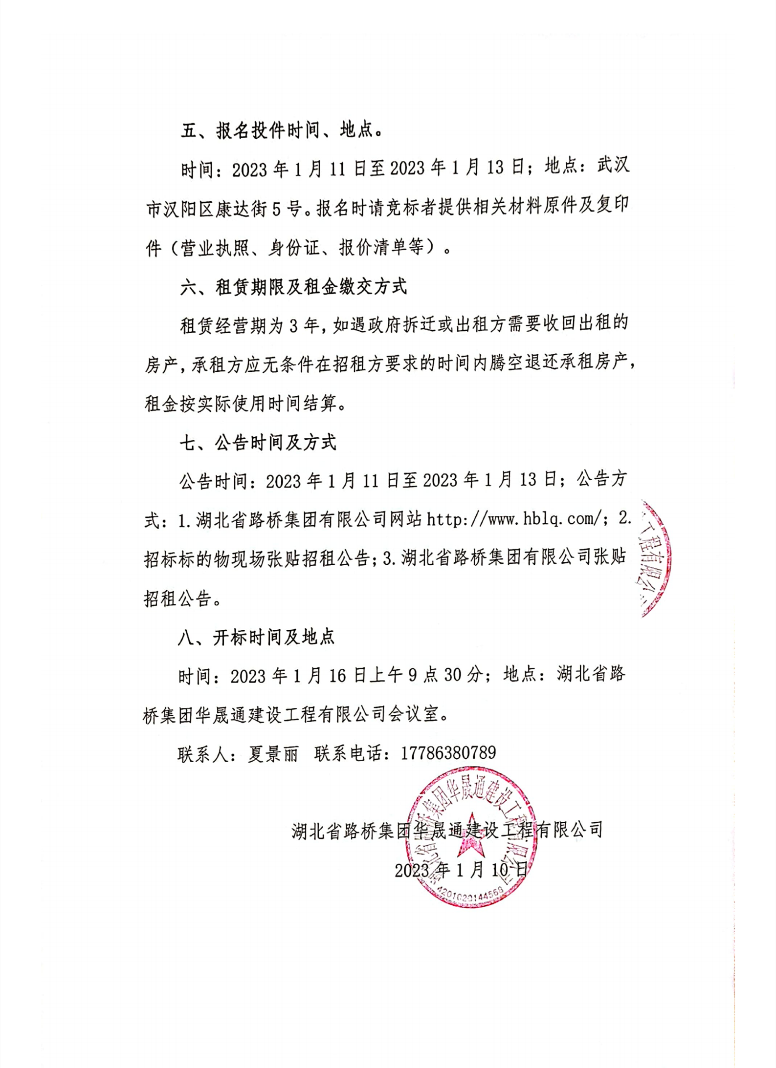 湖北省路橋集團華晟通建設(shè)工程有限公司自有房產(chǎn)招租公告